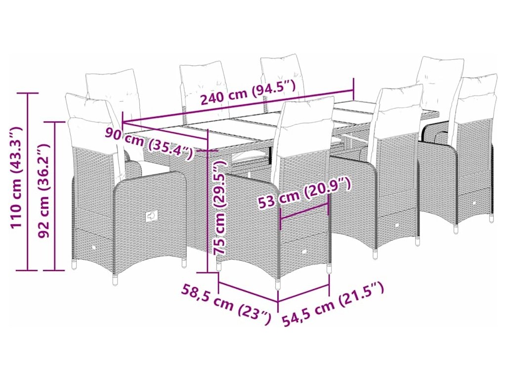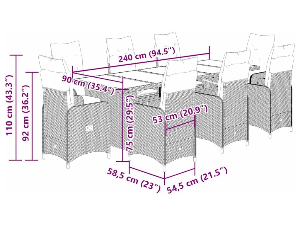 9dílný zahradní bistro set s poduškami polyratan [3277283]