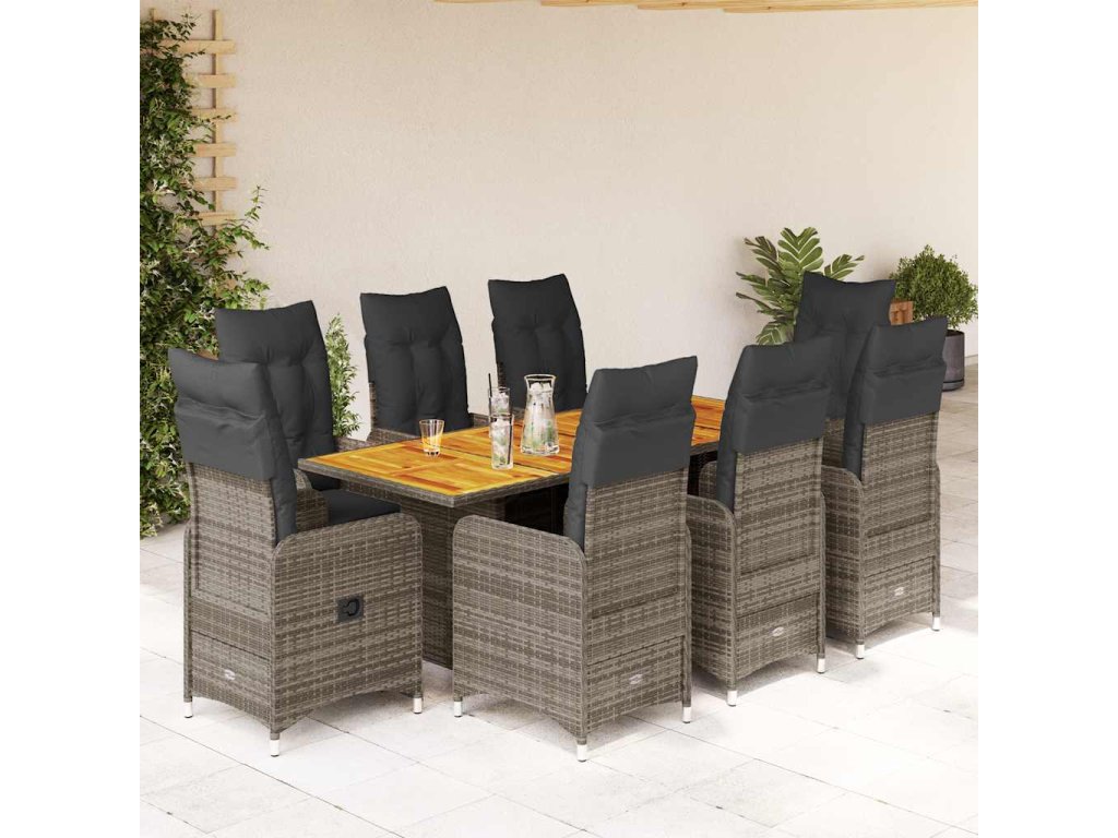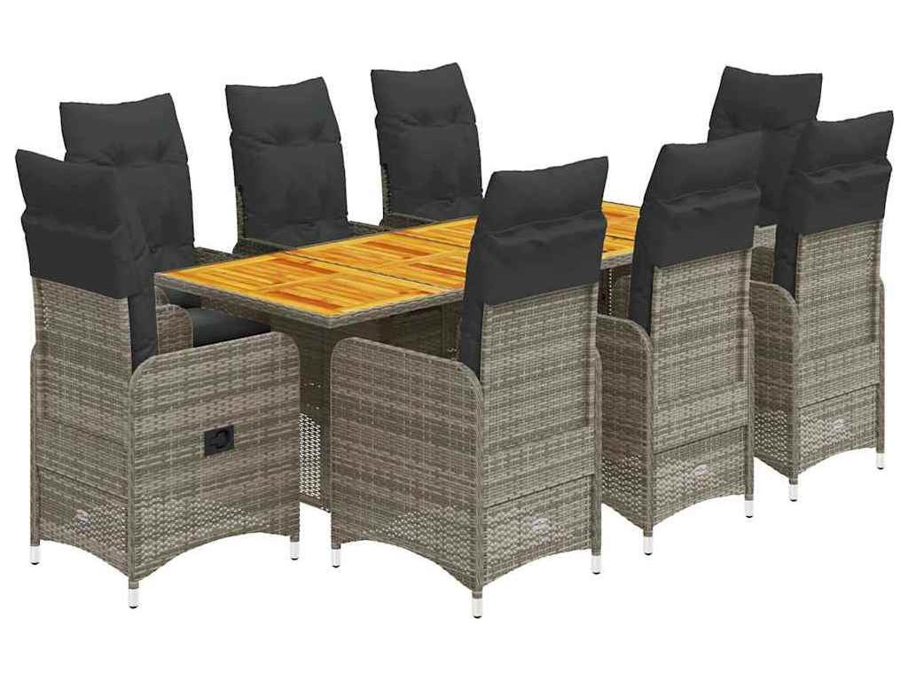9dílný zahradní bistro set s poduškami šedý polyratan [3277030]