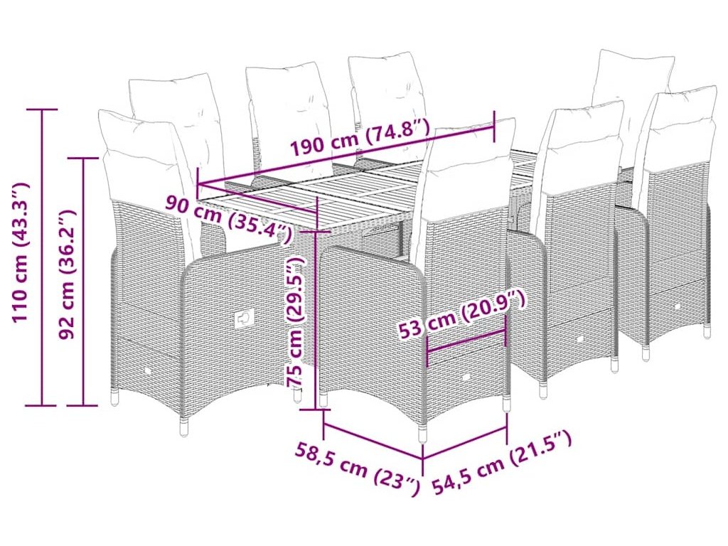 - Materiál: PE ratan, ocel, masivní akáciové dřevo s olejovou úpravou