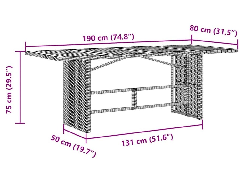 - Stabilní a snadno čistitelná deska stolu: Tento zahradní stůl má desku z akáciového dřeva, která je pevná, odolná a snadno se čistí vlhkým hadříkem.