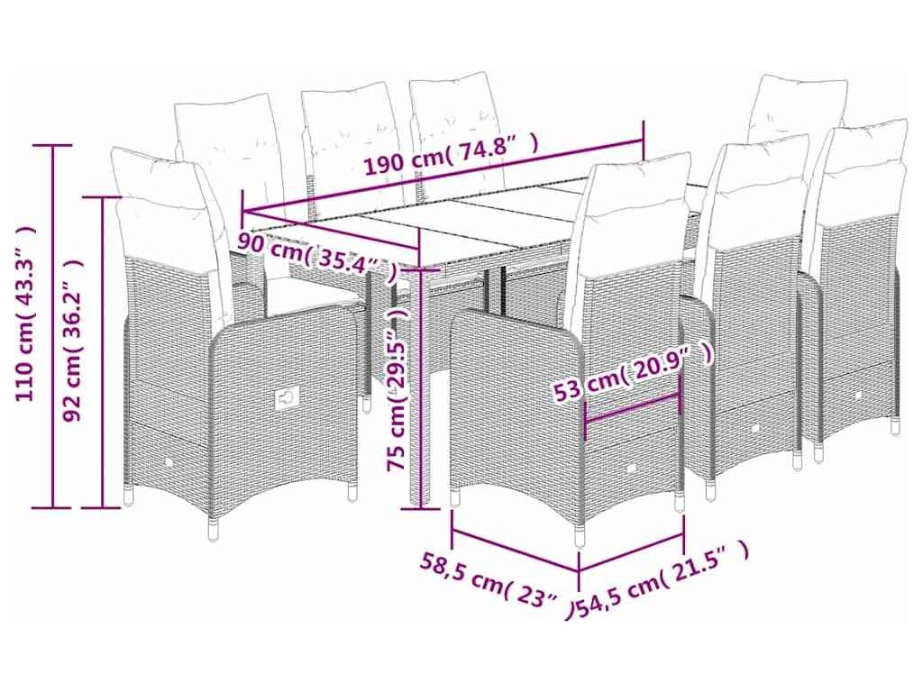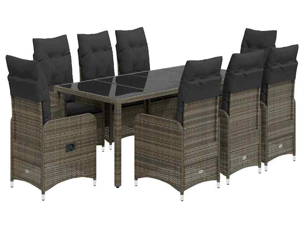 9dílný zahradní bistro set s poduškami šedý polyratan [3277038]