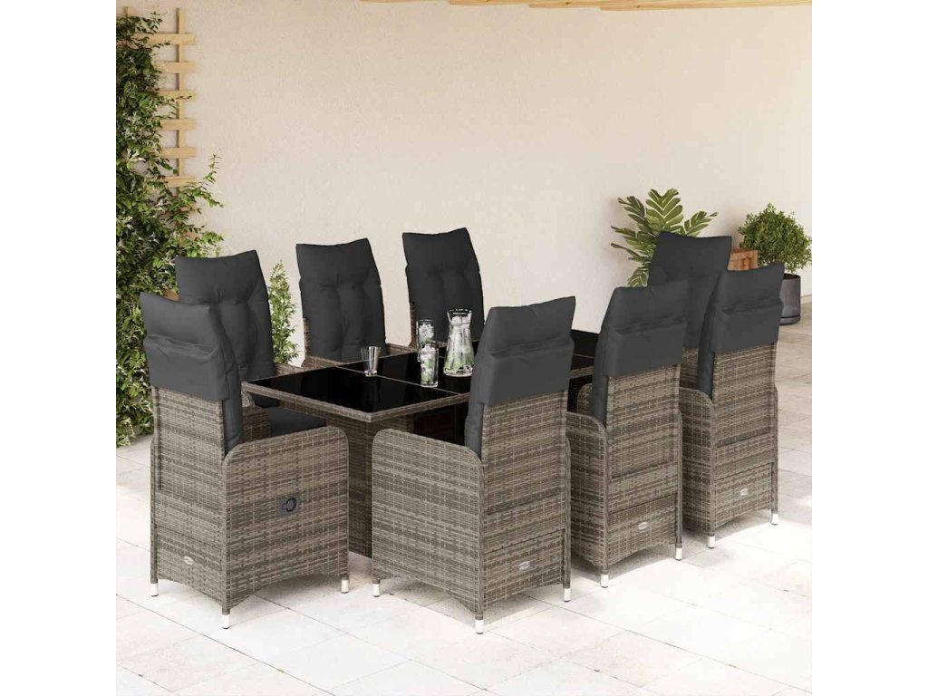 9dílný zahradní bistro set s poduškami šedý polyratan [3277041]