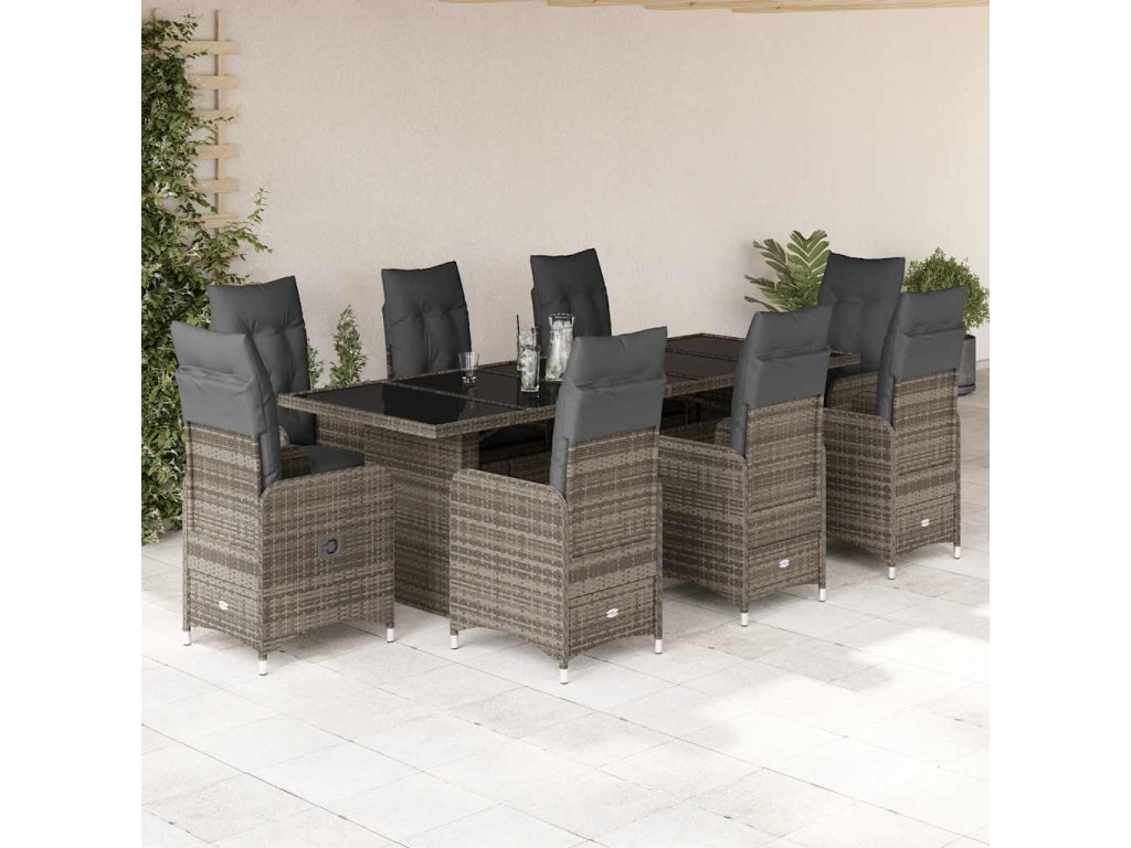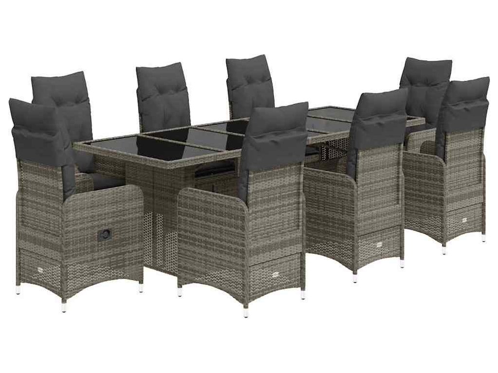 9dílný zahradní bistro set s poduškami šedý polyratan [3277280]