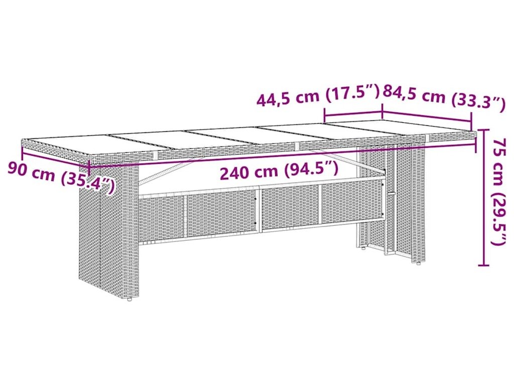 - Rozměry: 240 x 90 x 75 cm (D x Š x V)