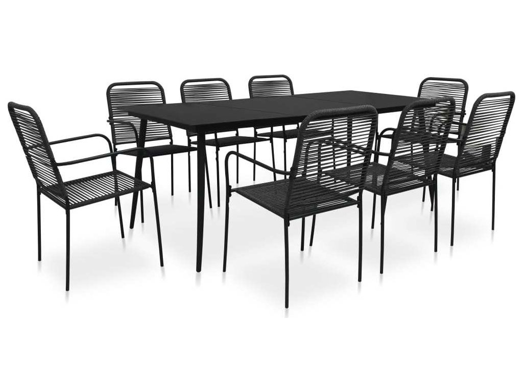 9dílný zahradní jídelní set bavlněné provázky a ocel černý [3058280]