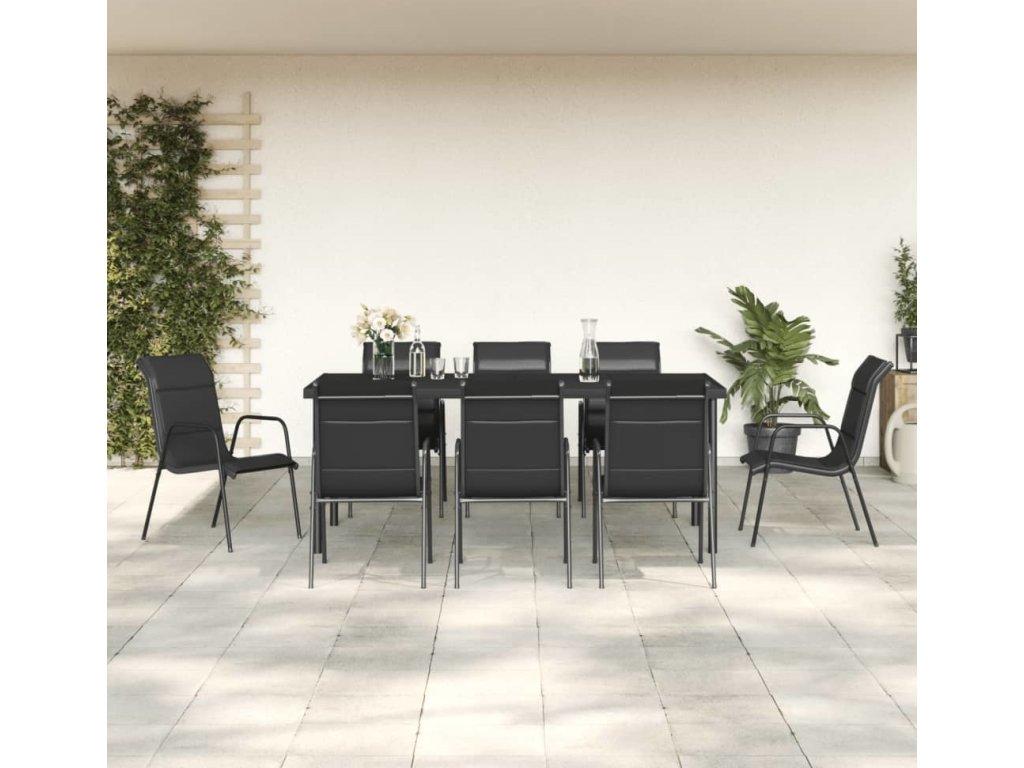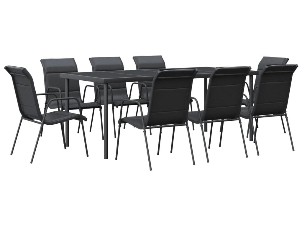 9dílný zahradní jídelní set černý ocel a textilen [3200701]