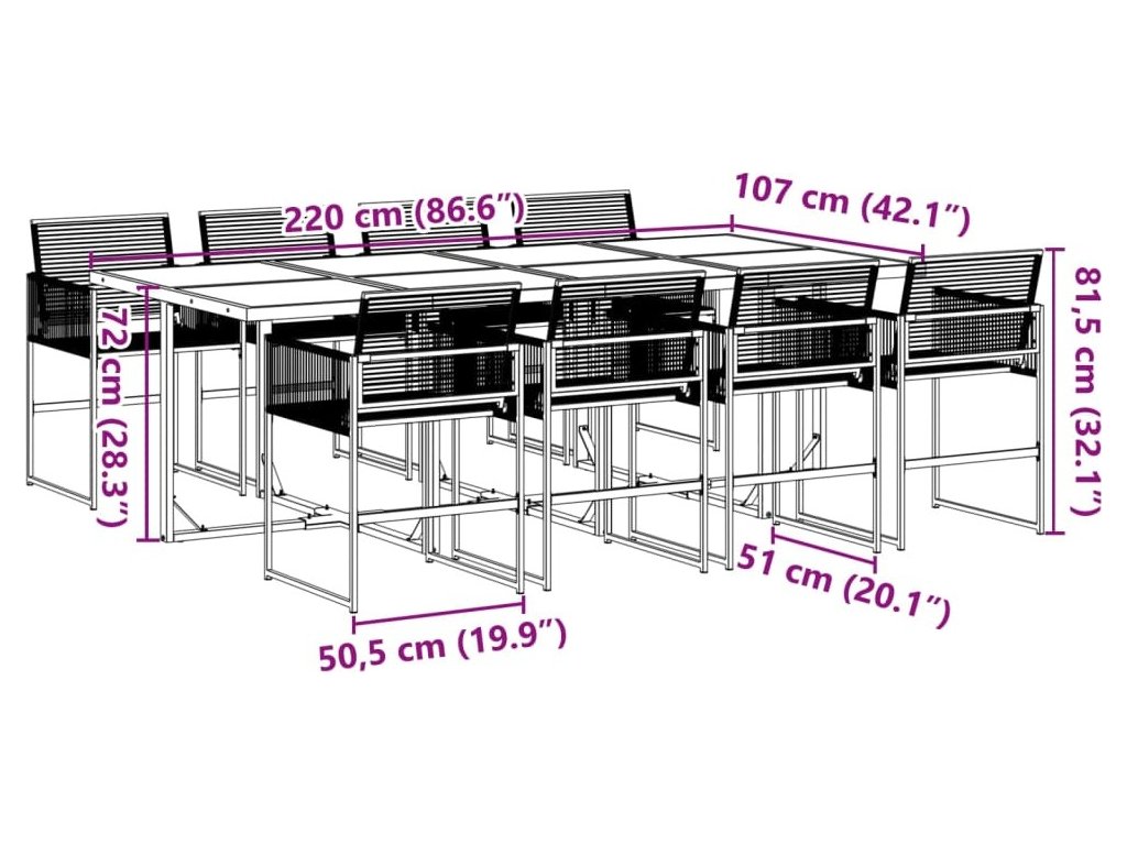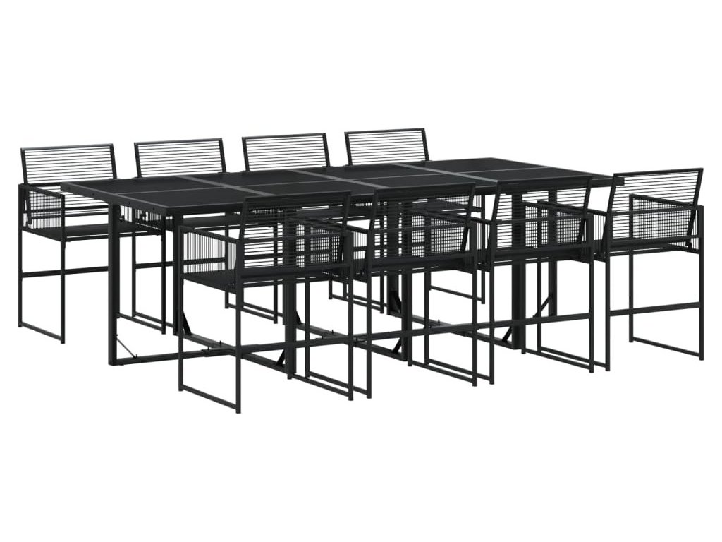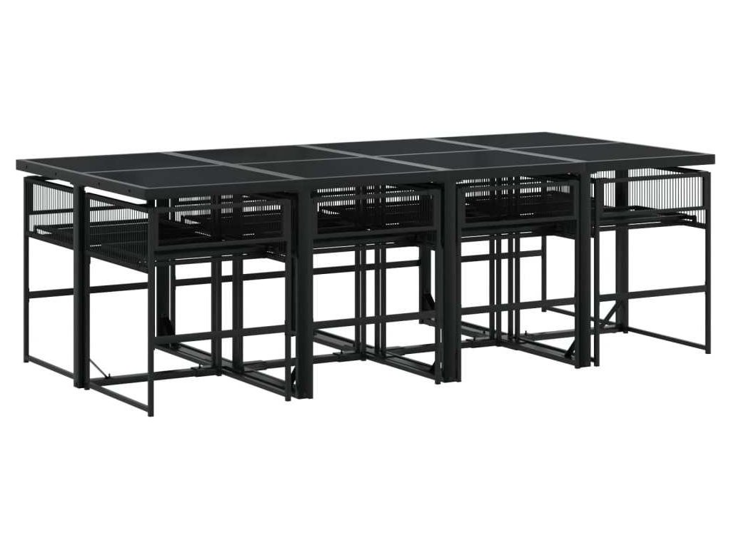 9dílný zahradní jídelní set černý polyratan [3295050]