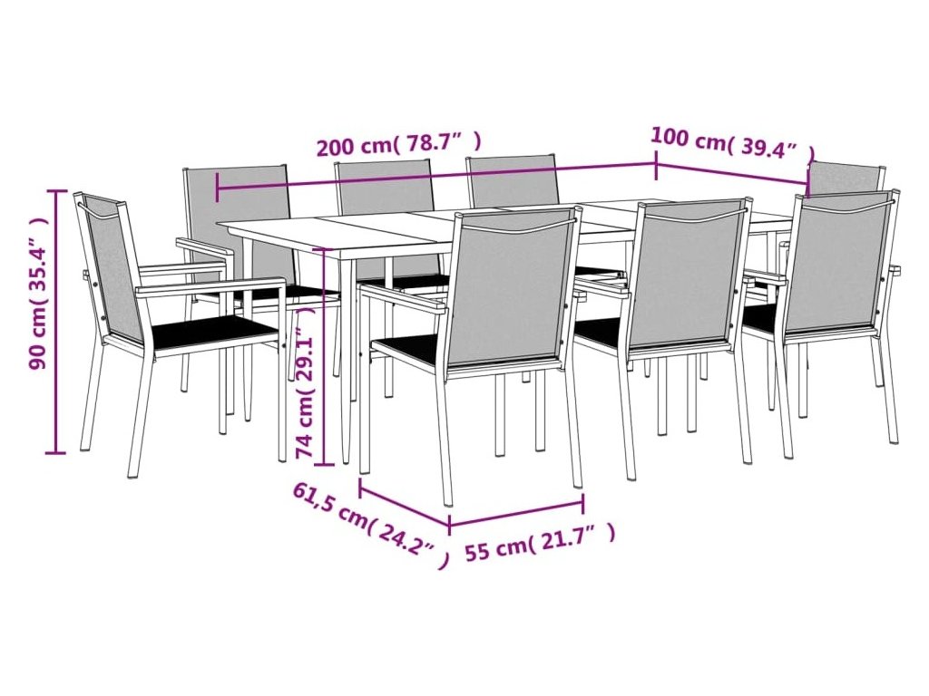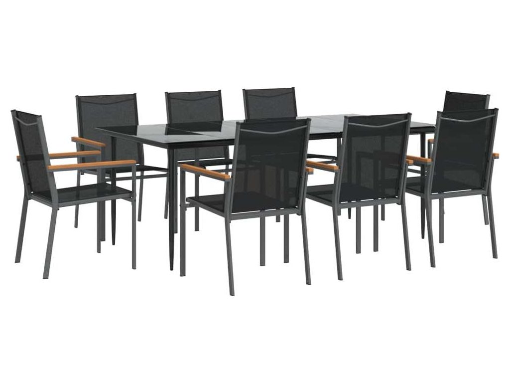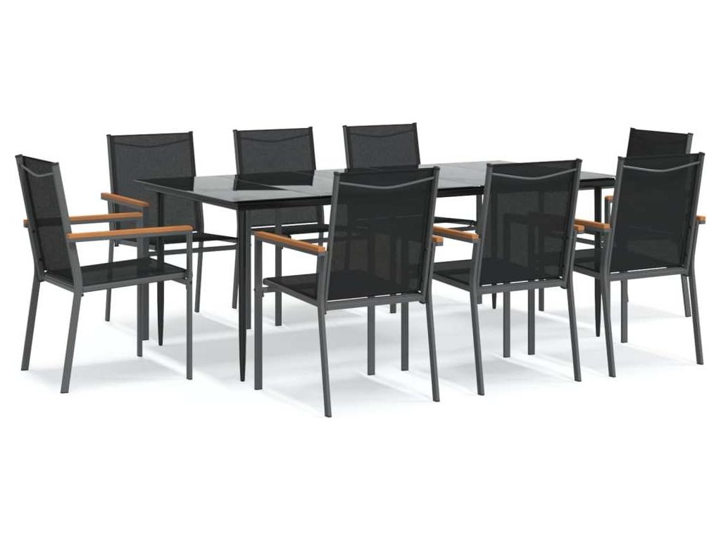 9dílný zahradní jídelní set černý textilen a ocel [3187040]