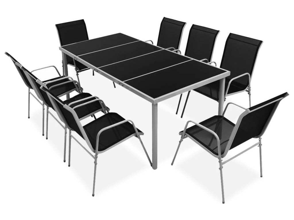 Náš jídelní set se skládá z 1 stolu se skleněnou deskou a 8 textilenových židlí. Jídelní set má stylový design a odolný ocelový rám, a proto je rozhodně perfektní volbou pro váš venkovní prostor. Jednoduchá elegance tohoto jídelního setu vytvoří z každého stolování zvláštní událost.