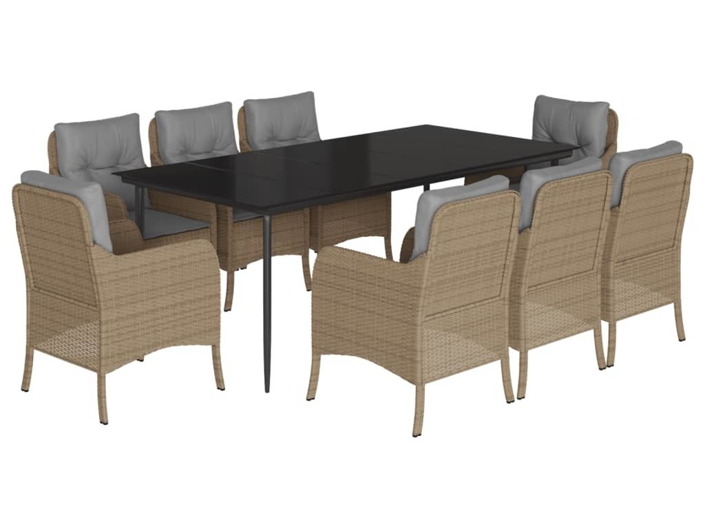 9dílný zahradní jídelní set s poduškami béžový polyratan [3211982]