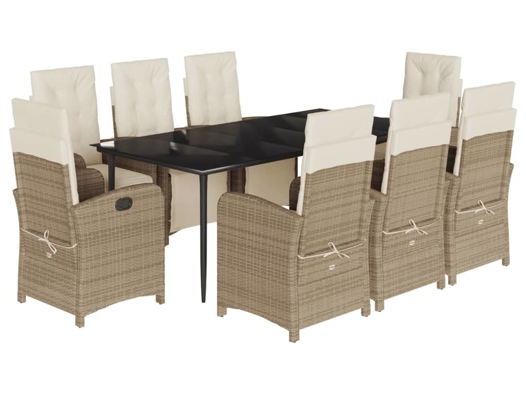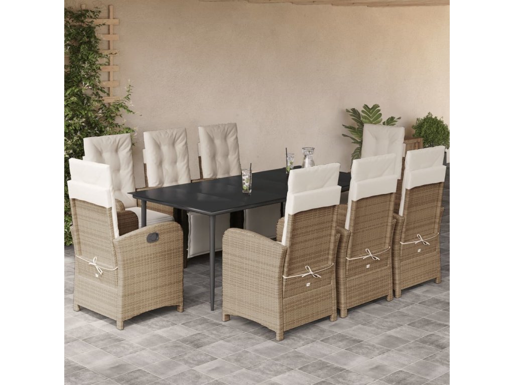 9dílný zahradní jídelní set s poduškami béžový polyratan [3212576]
