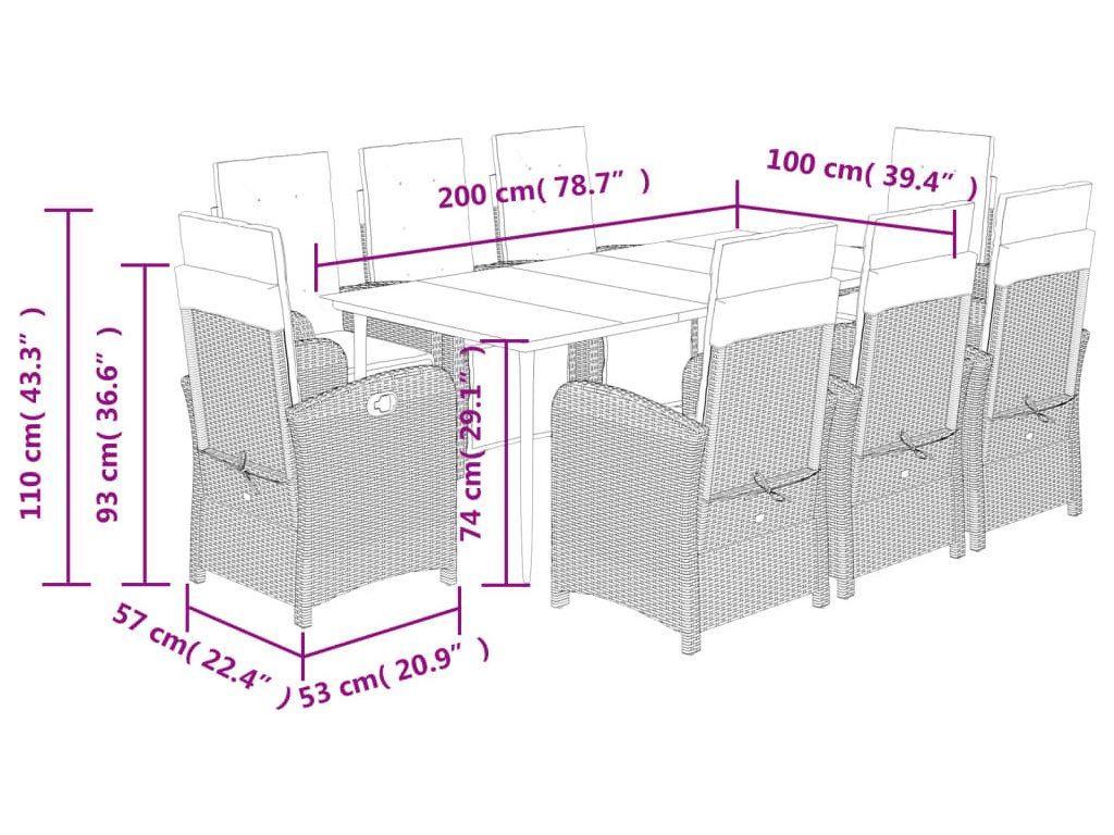- Pohodlné sezení: Tento venkovní nábytek se silně polstrovanými poduškami a polštáři nabízí pohodlné sezení.
