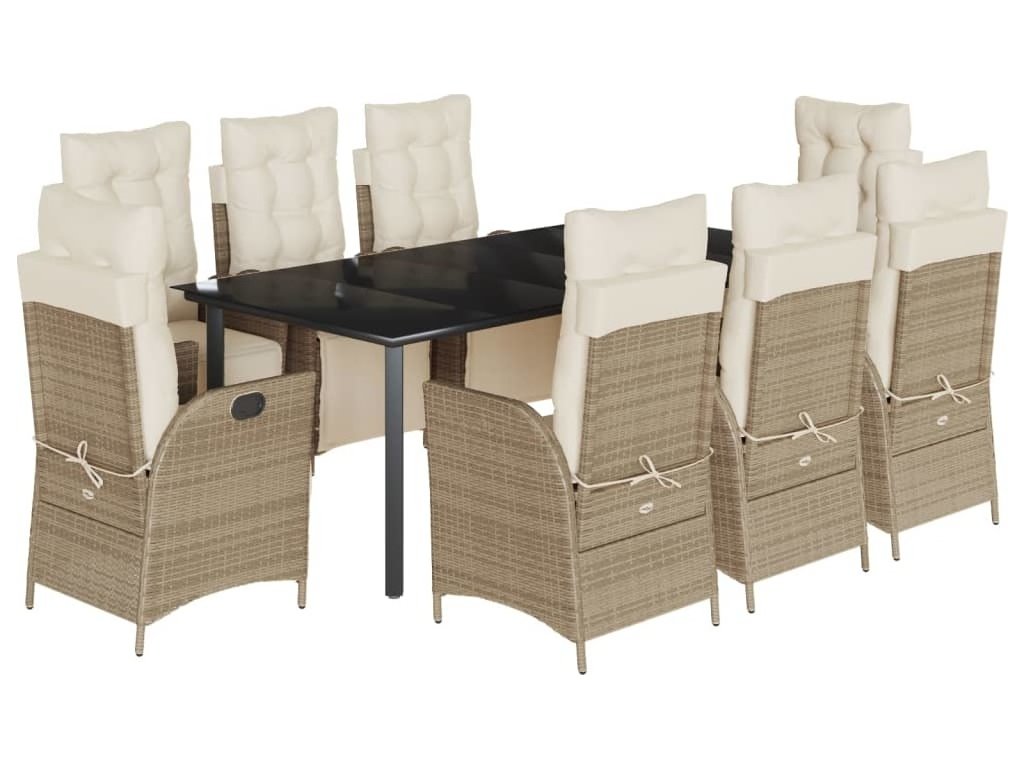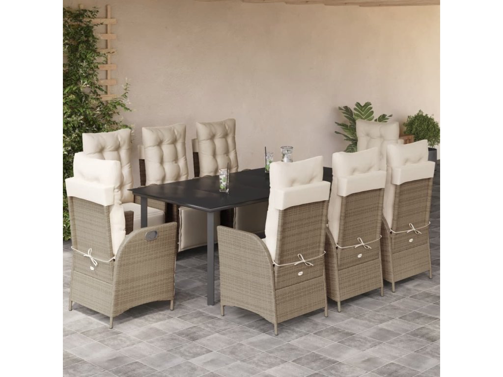 9dílný zahradní jídelní set s poduškami béžový polyratan [3213447]
