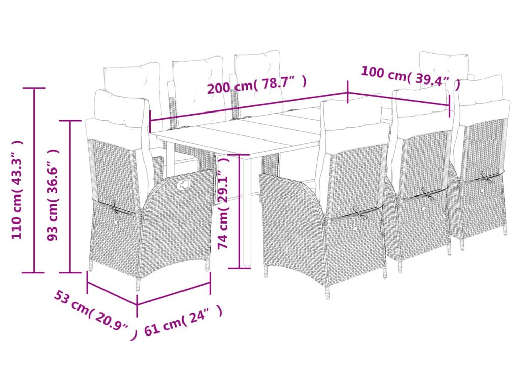 - Pohodlné sezení: Tento venkovní nábytek se silně polstrovanými poduškami a polštáři nabízí pohodlné sezení.