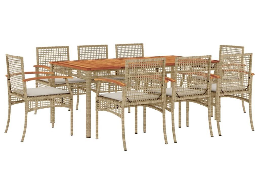 9dílný zahradní jídelní set s poduškami béžový polyratan [3213583]
