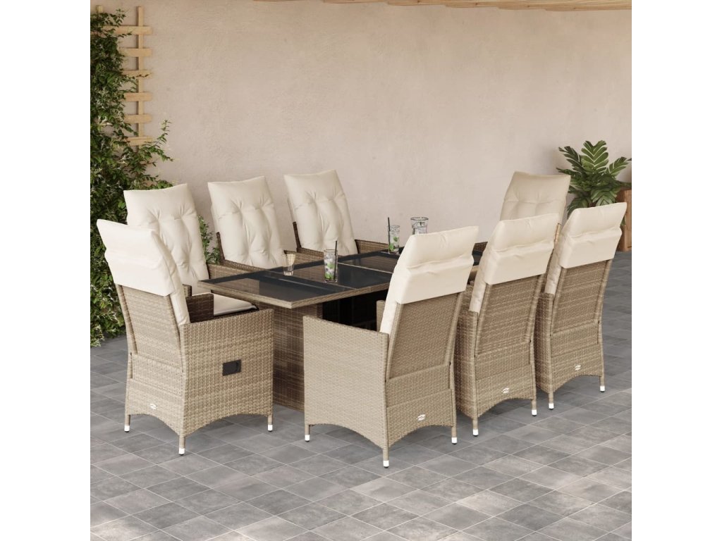 9dílný zahradní jídelní set s poduškami béžový polyratan [3276809]