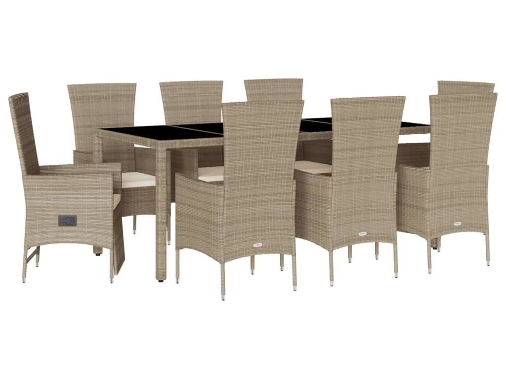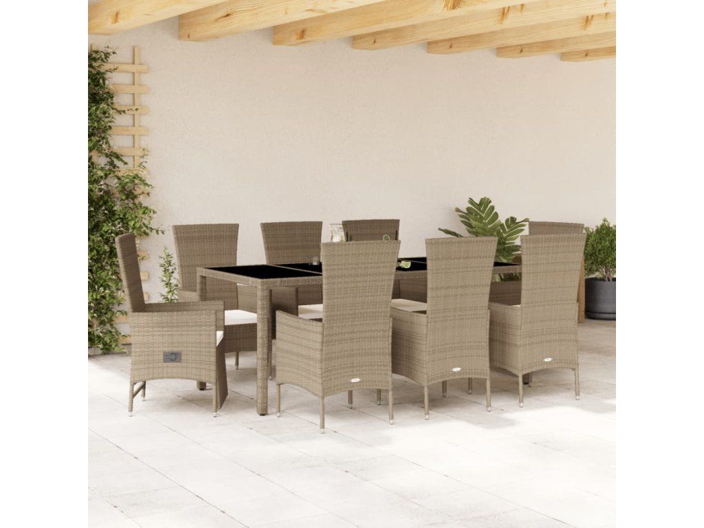 9dílný zahradní jídelní set s poduškami béžový polyratan [3277582]