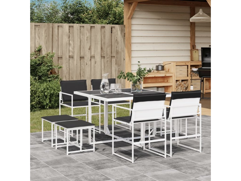 9dílný zahradní jídelní set s poduškami bílý textilen [3295113]