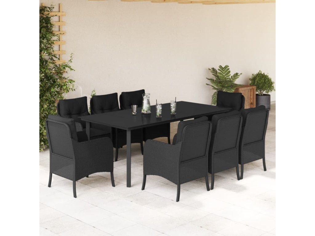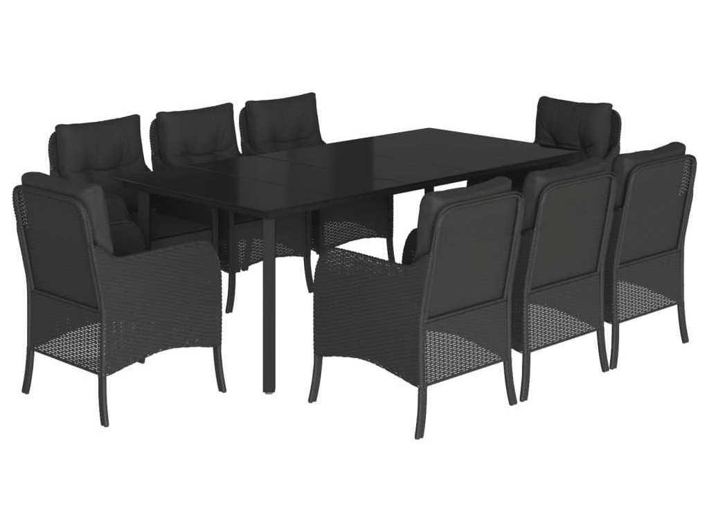 9dílný zahradní jídelní set s poduškami černý polyratan [3211933]