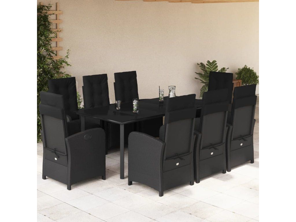 9dílný zahradní jídelní set s poduškami černý polyratan [3212541]