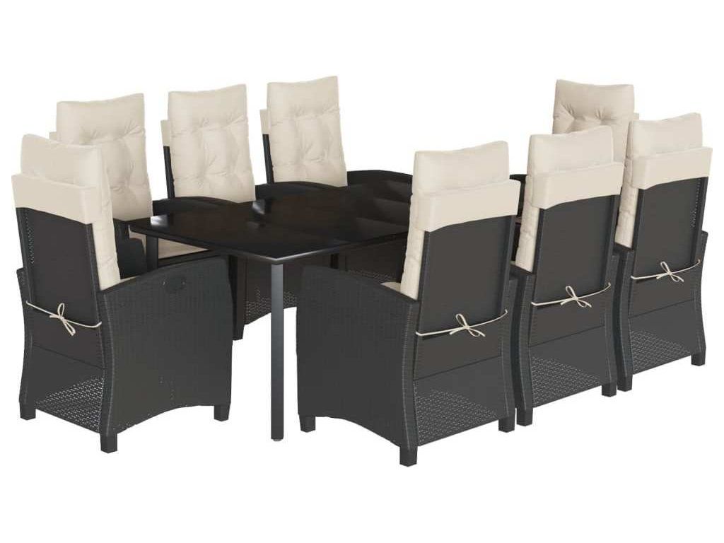 9dílný zahradní jídelní set s poduškami černý polyratan [3212740]