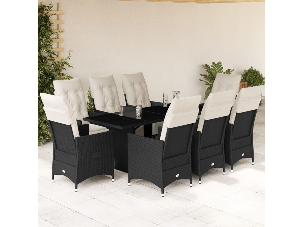9dílný zahradní jídelní set s poduškami černý polyratan [3276870]
