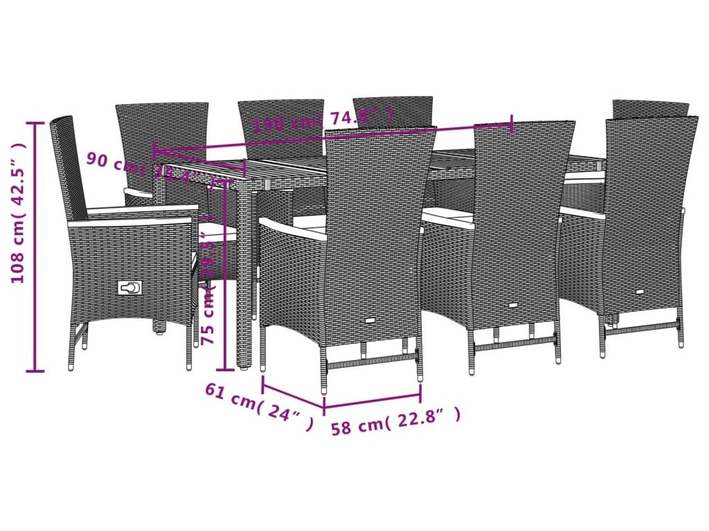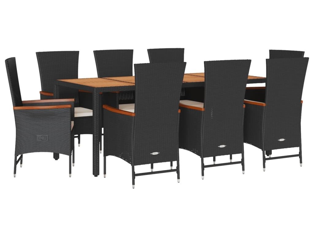 9dílný zahradní jídelní set s poduškami černý polyratan [3277516]