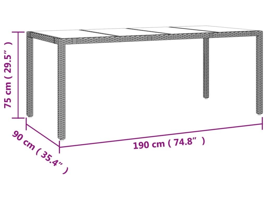 - Rozměry: 190 x 90 x 75 cm (D x Š x V)