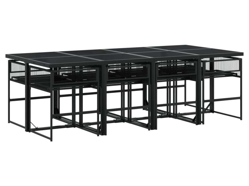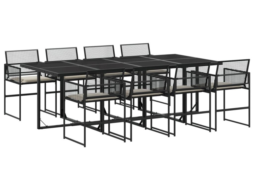 9dílný zahradní jídelní set s poduškami černý polyratan [3295010]