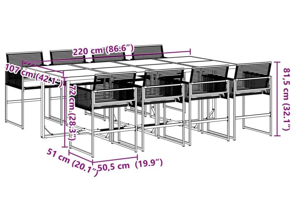 - Robustní a stabilní rám: Ocelový rám s práškovým nástřikem zajišťuje, že zahradní nábytek je pevný a stabilní pro každodenní venkovní použití.