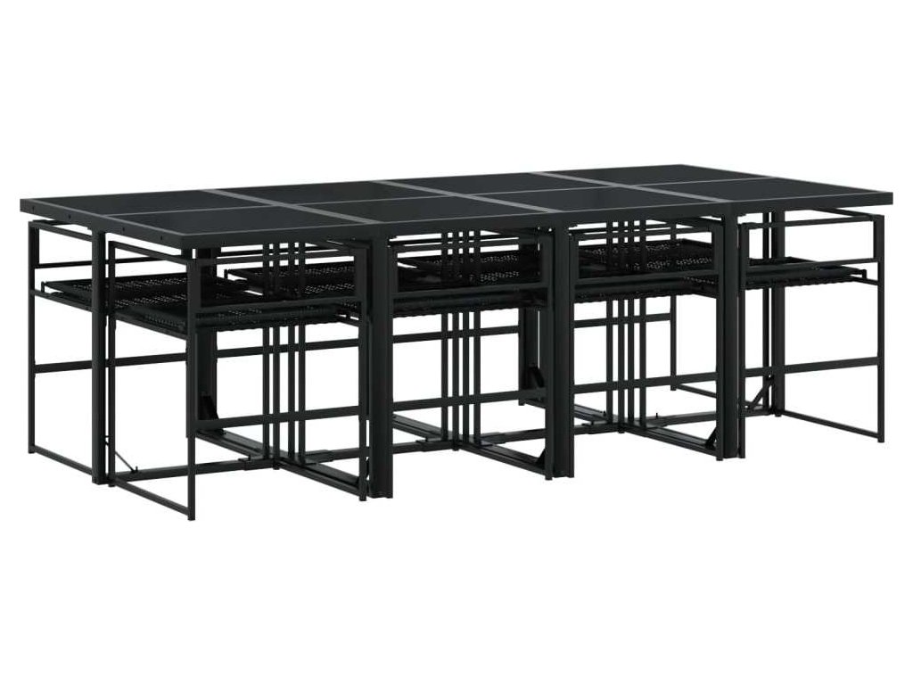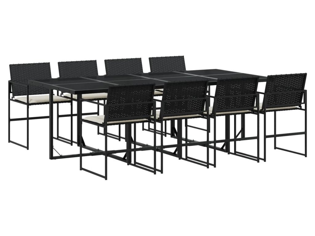 9dílný zahradní jídelní set s poduškami černý polyratan [3295060]