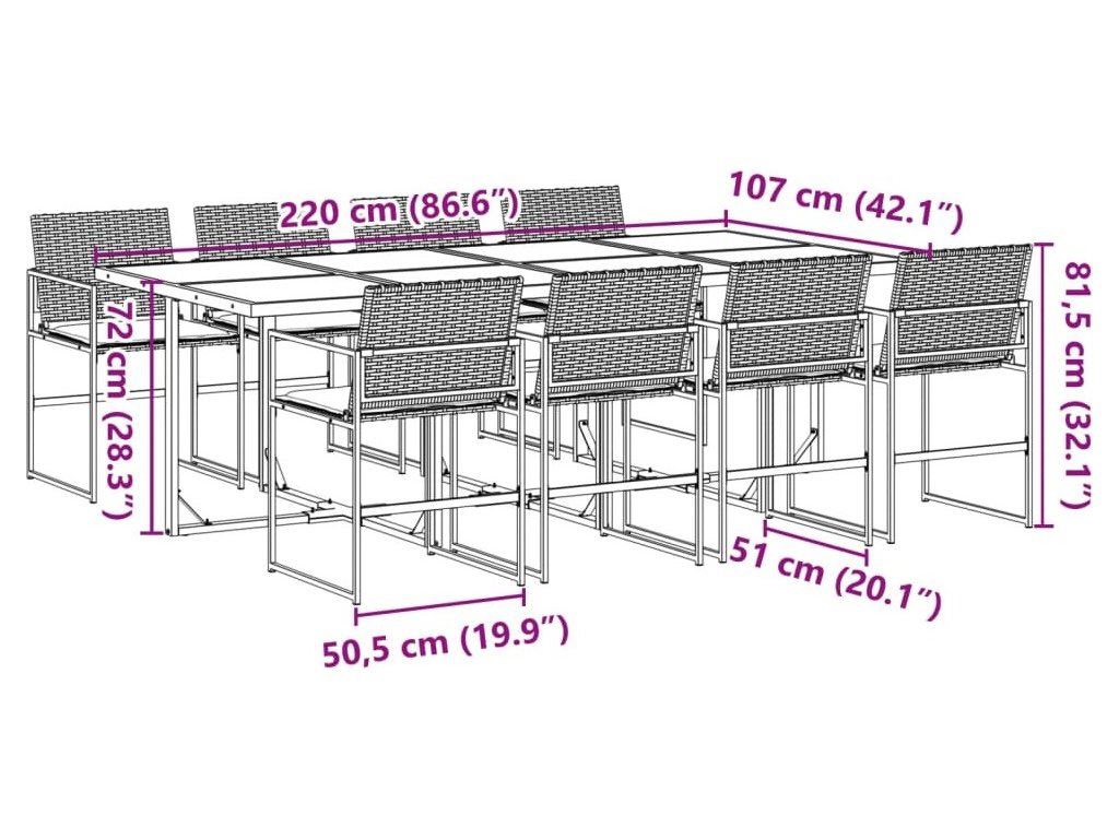 - Robustní a stabilní rám: Ocelový rám s práškovým nástřikem zajišťuje, že zahradní nábytek je pevný a stabilní pro každodenní venkovní použití.
