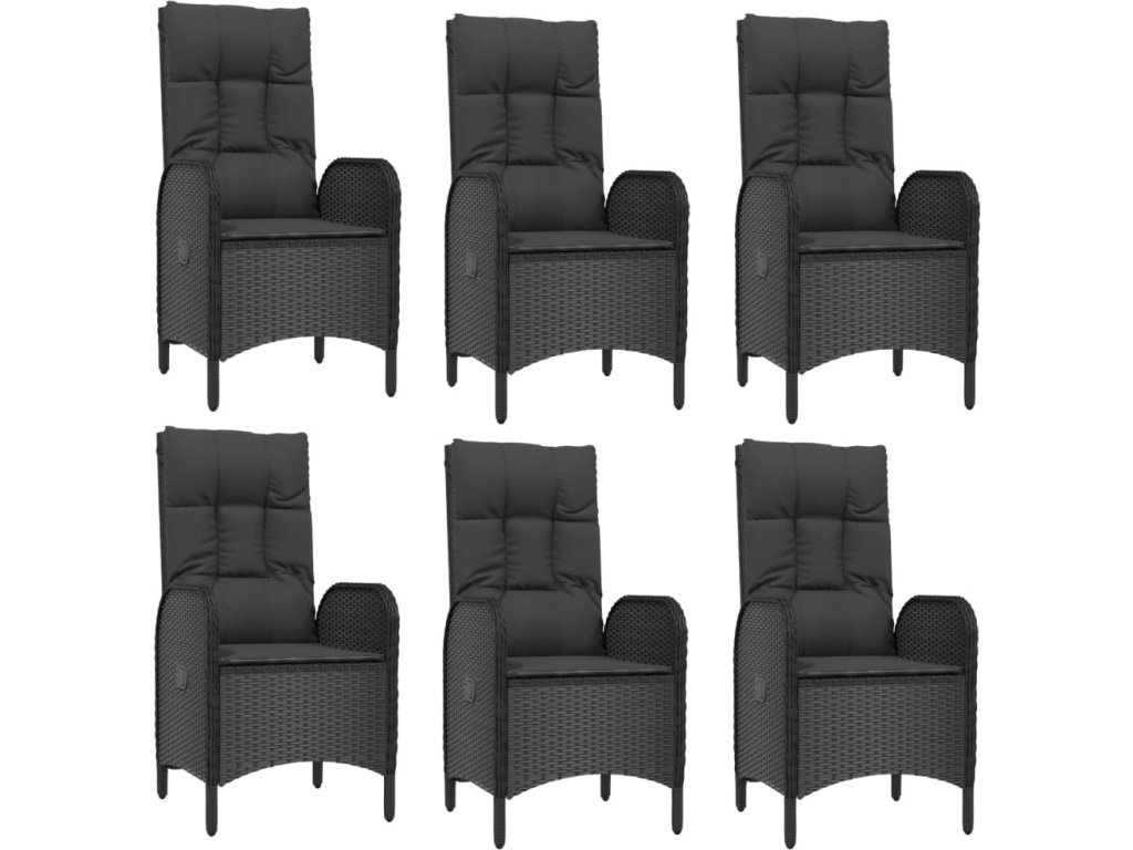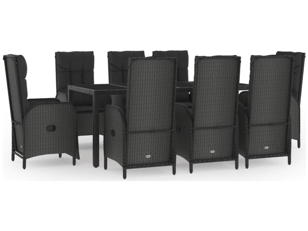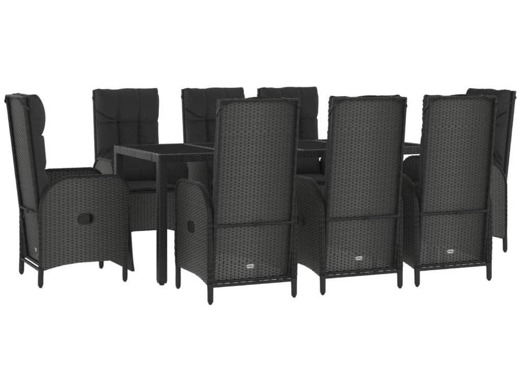 9dílný zahradní jídelní set s poduškami černý polyratan [3185067]