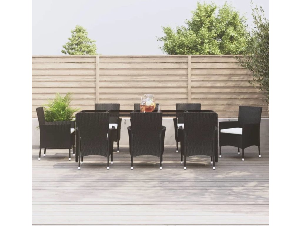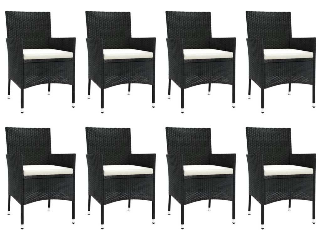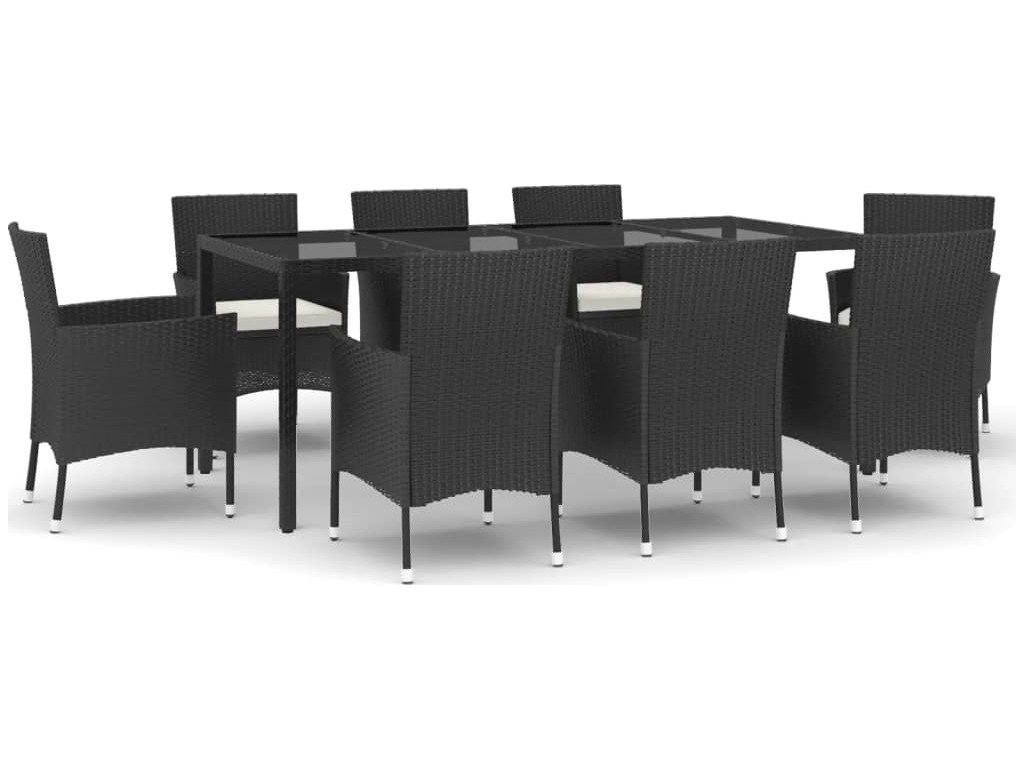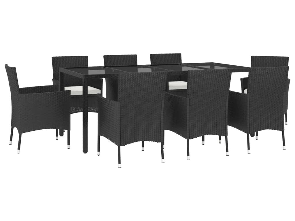 9dílný zahradní jídelní set s poduškami černý polyratan [3187322]