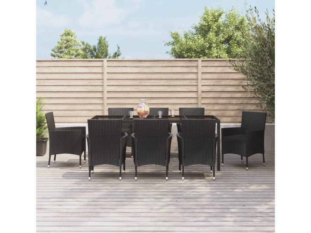9dílný zahradní jídelní set s poduškami černý polyratan [3187329]