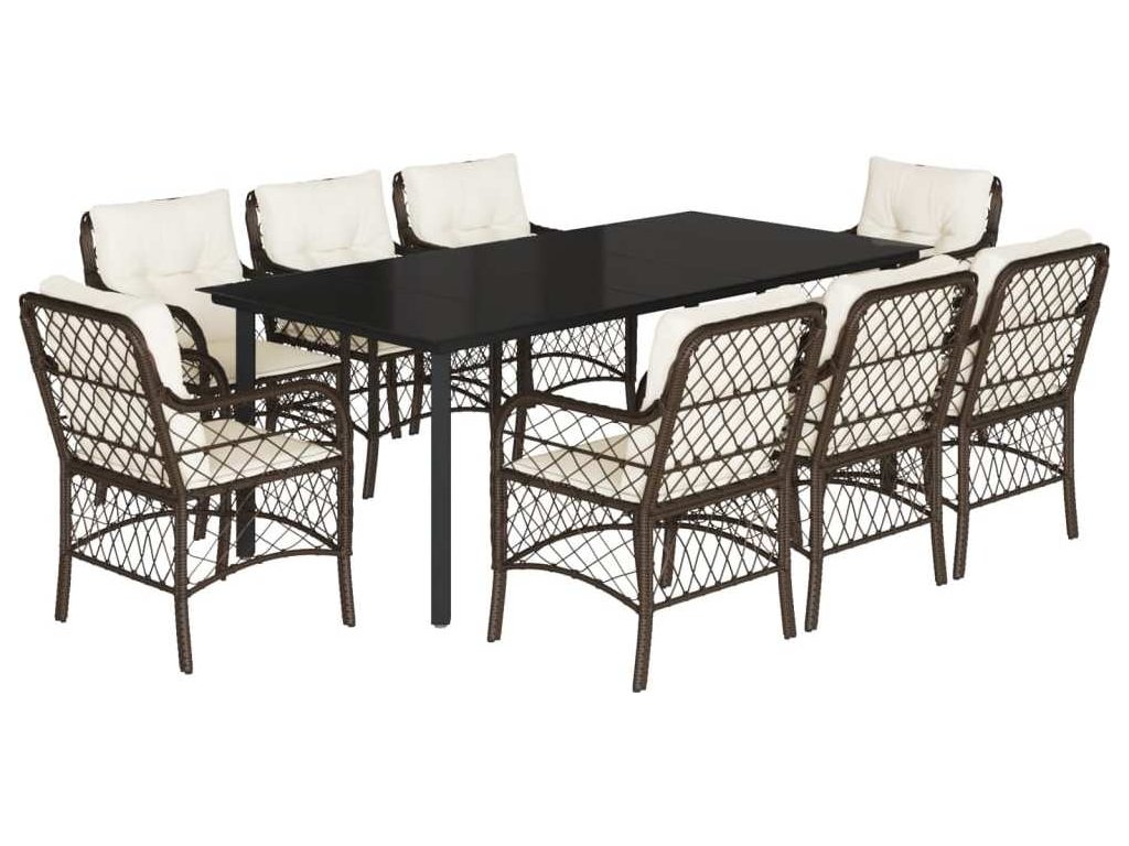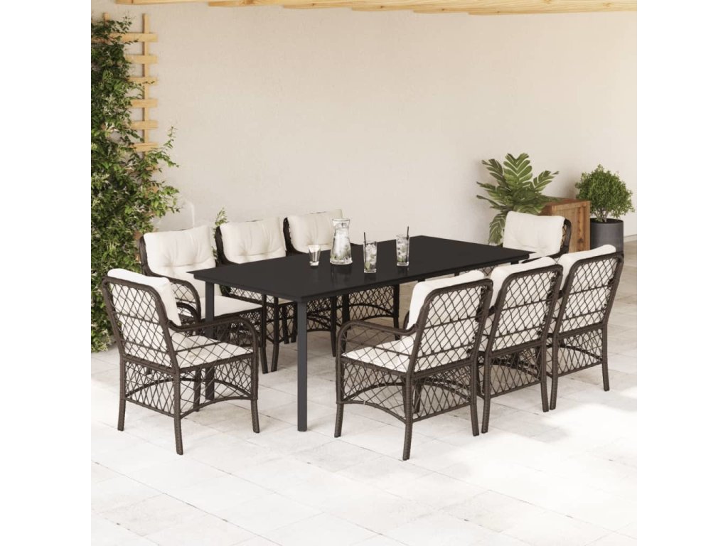9dílný zahradní jídelní set s poduškami hnědý polyratan [3212123]
