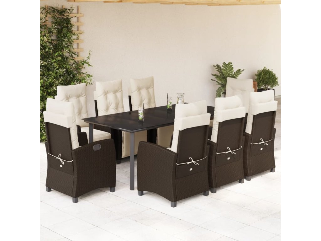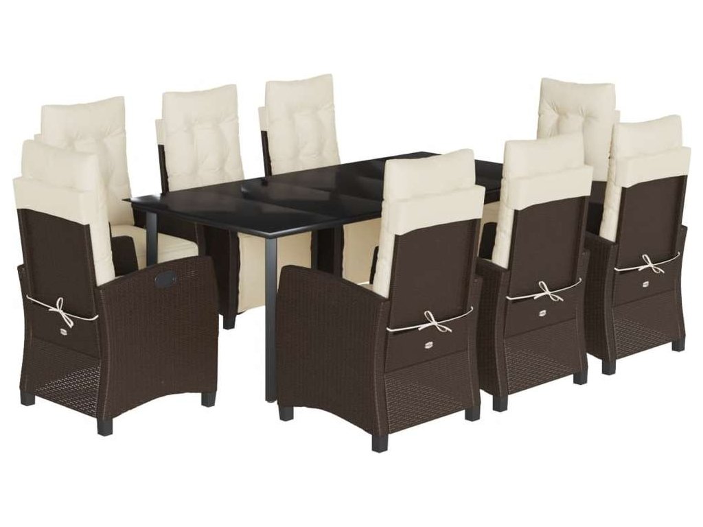 9dílný zahradní jídelní set s poduškami hnědý polyratan [3212987]