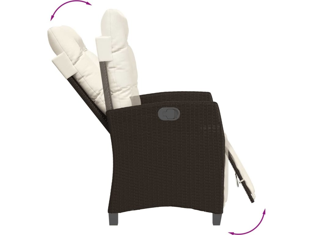 - Nastavitelné opěradlo a opěrka nohou: Tato zahradní židle je opatřena rukojetí. Zatáhnutím za ni můžete opěradlo a opěrku nohou nastavit do libovolné polohy. Stejně tak je můžete rychle vrátit do původní pozice.