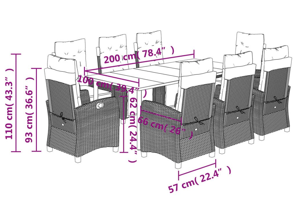 Tento zahradní jídelní set je skvělou volbou pro stolování pod širým nebem nebo jen tak pro odpočívání na zahradě, dvorku či terase.
