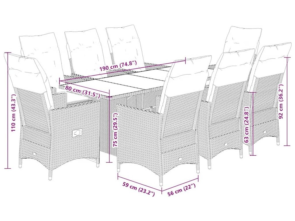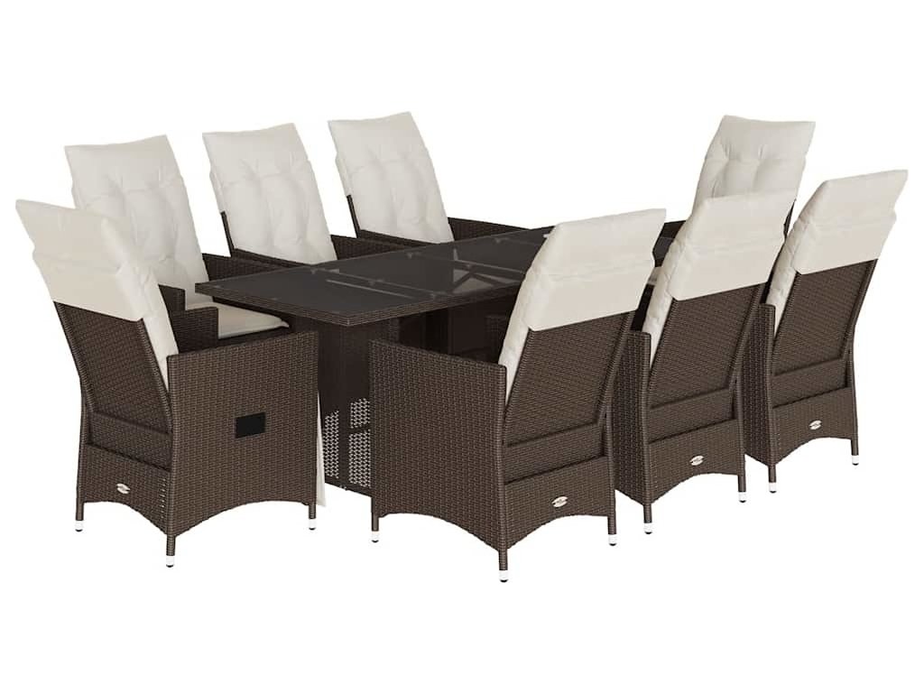9dílný zahradní jídelní set s poduškami hnědý polyratan [3276778]