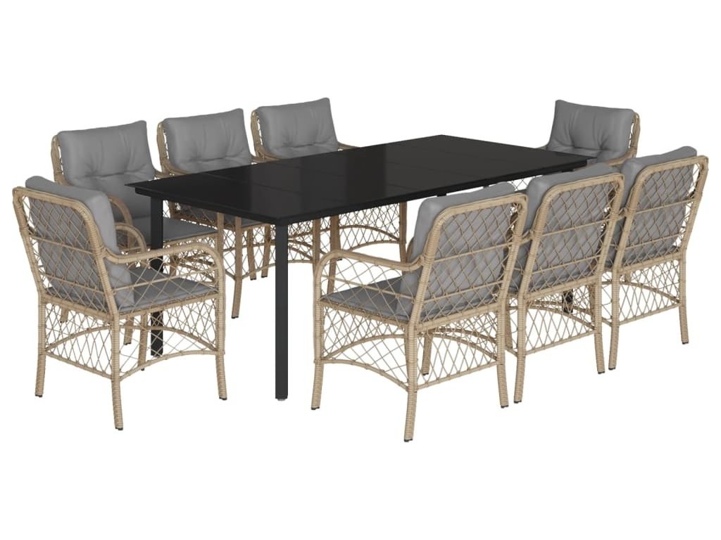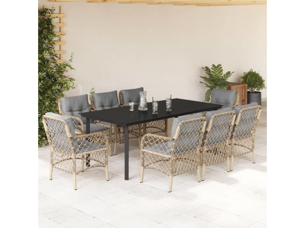 9dílný zahradní jídelní set s poduškami mix béžové polyratan [3212165]