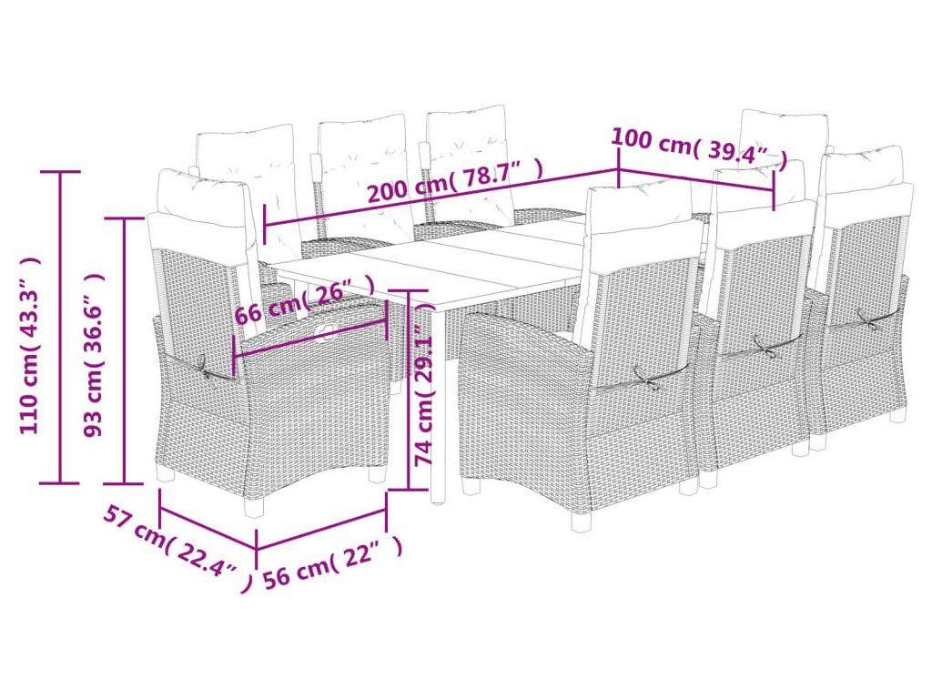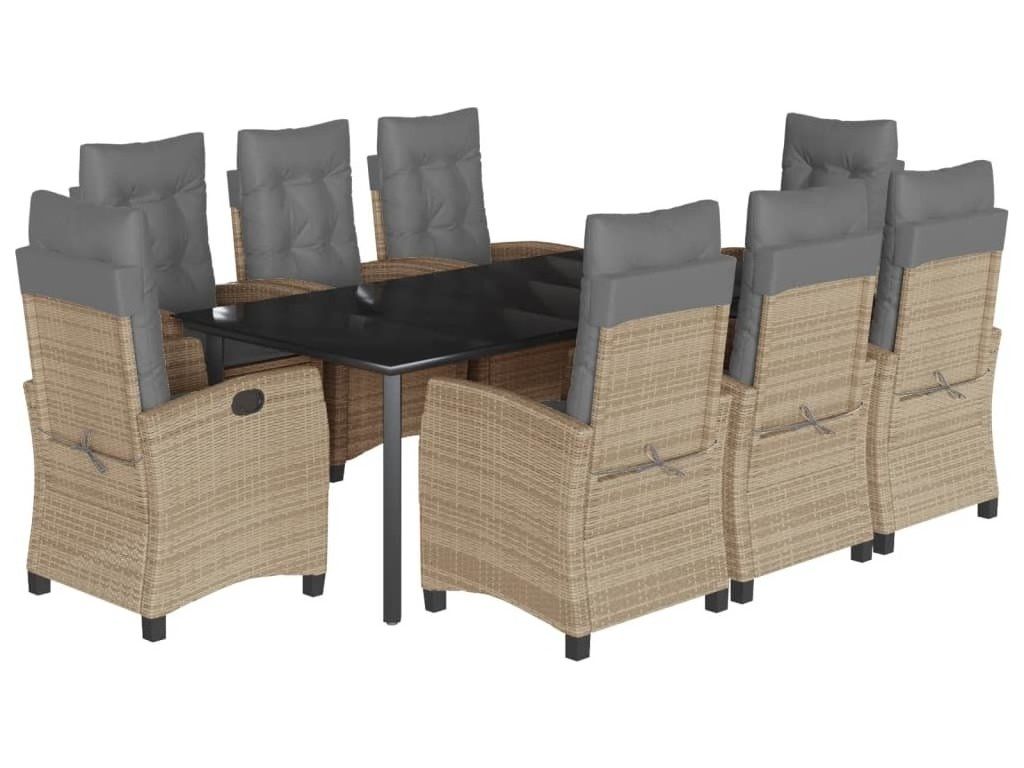 9dílný zahradní jídelní set s poduškami mix béžové polyratan [3212841]