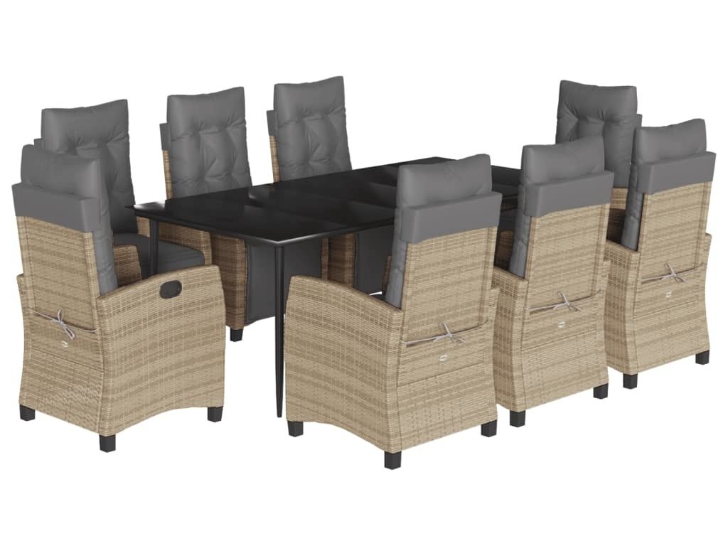 9dílný zahradní jídelní set s poduškami mix béžové polyratan [3213022]