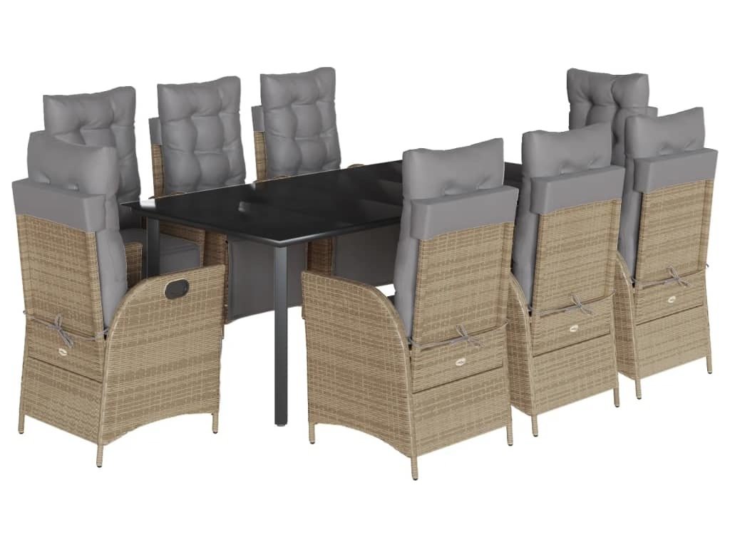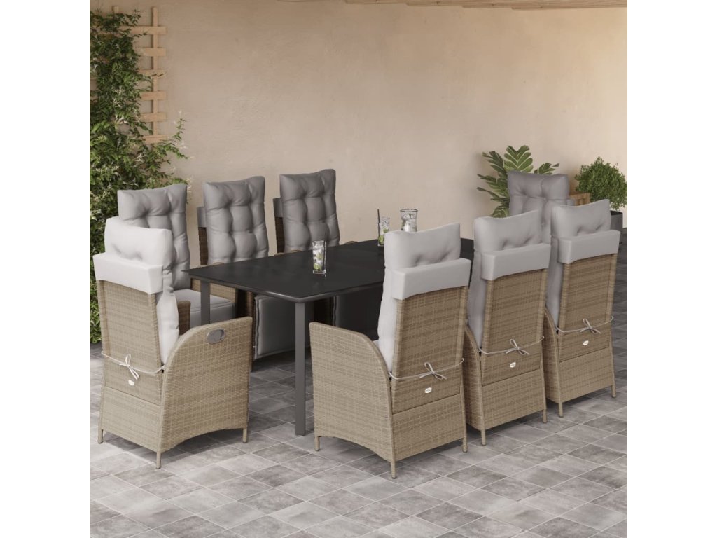 9dílný zahradní jídelní set s poduškami mix béžové polyratan [3213461]