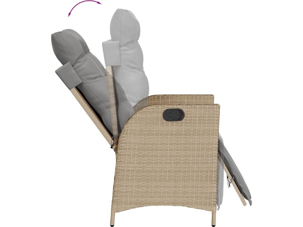 - Nastavitelné opěradlo a opěrka nohou: Tato zahradní židle je opatřena rukojetí. Zatáhnutím za ni můžete opěradlo a opěrku nohou nastavit do libovolné polohy. Stejně tak je můžete rychle vrátit do původní pozice.