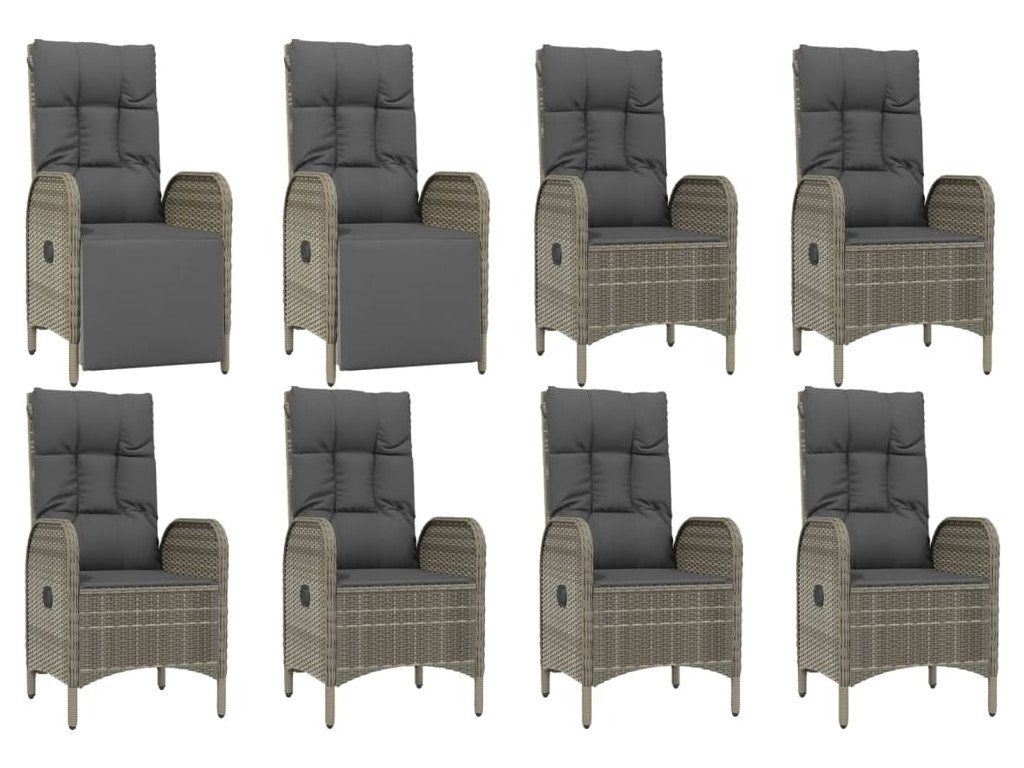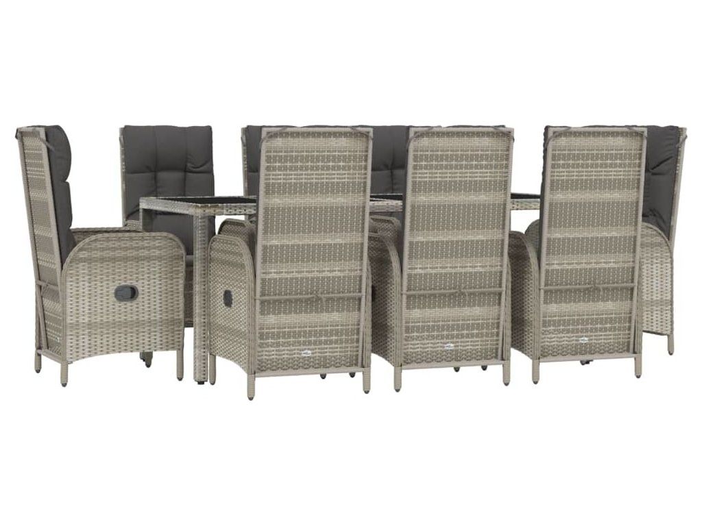 9dílný zahradní jídelní set s poduškami šedý polyratan [3185028]
