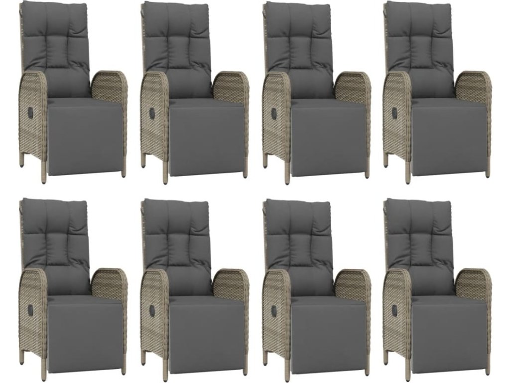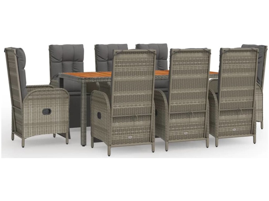9dílný zahradní jídelní set s poduškami šedý polyratan [3185049]