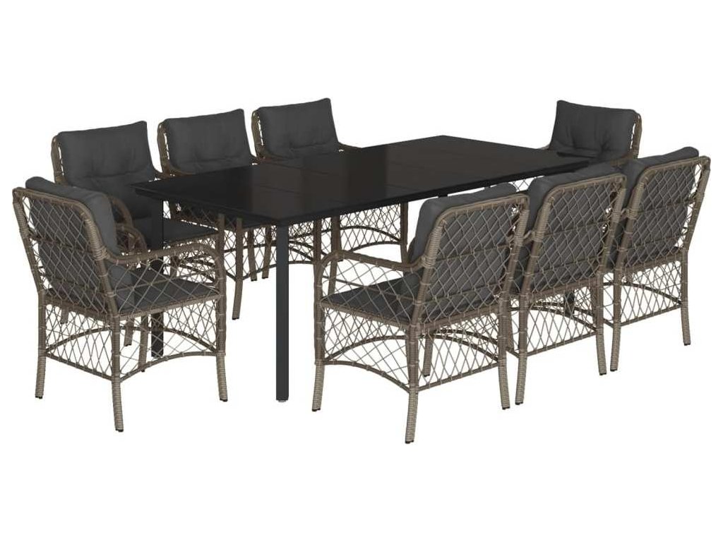 9dílný zahradní jídelní set s poduškami šedý polyratan [3212137]