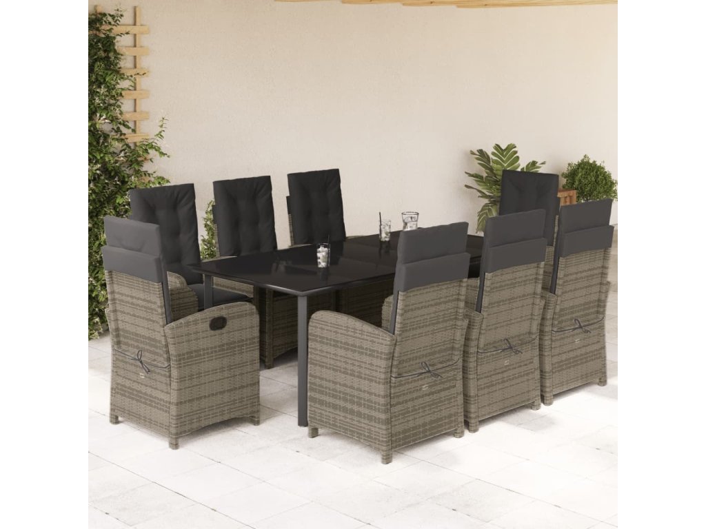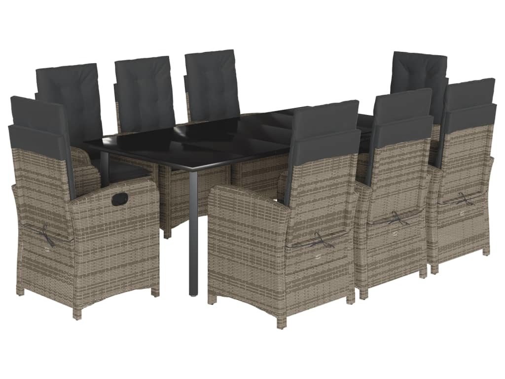 9dílný zahradní jídelní set s poduškami šedý polyratan [3212369]