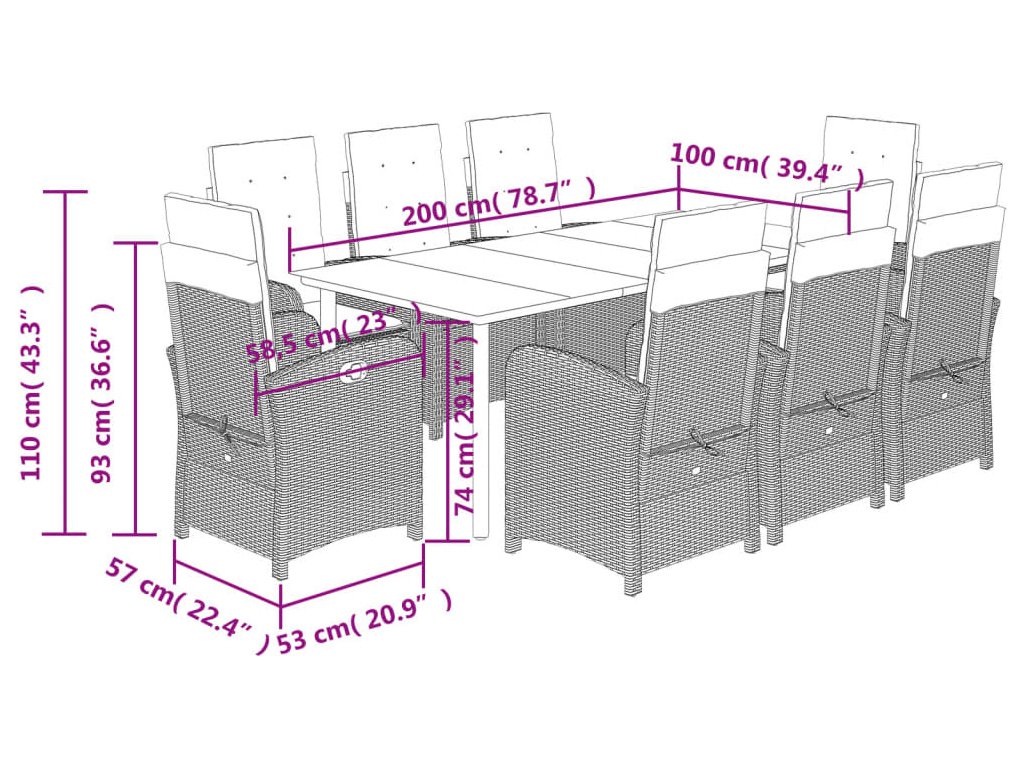 Tento zahradní jídelní set je skvělou volbou pro stolování pod širým nebem nebo jen tak pro odpočívání na zahradě, dvorku či terase.